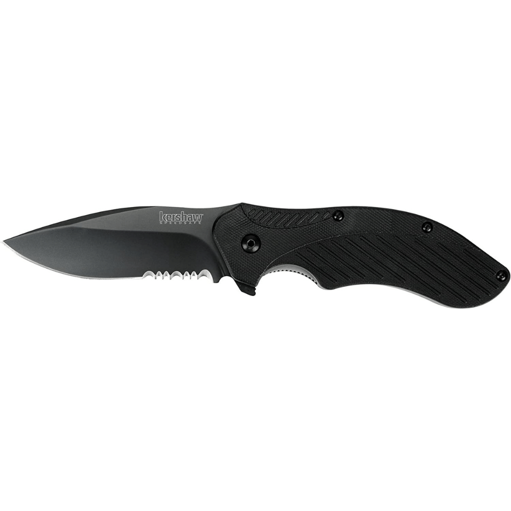 The Kershaw Clash Pocket Knife is a great option for anyone looking for an affordable, durable, reliable camping knife. The Clash features a 3.1" stainless steel blade with a black-oxide coating, a glass-filled nylon handle with Speed Safe opening, and a reversible pocket clip.