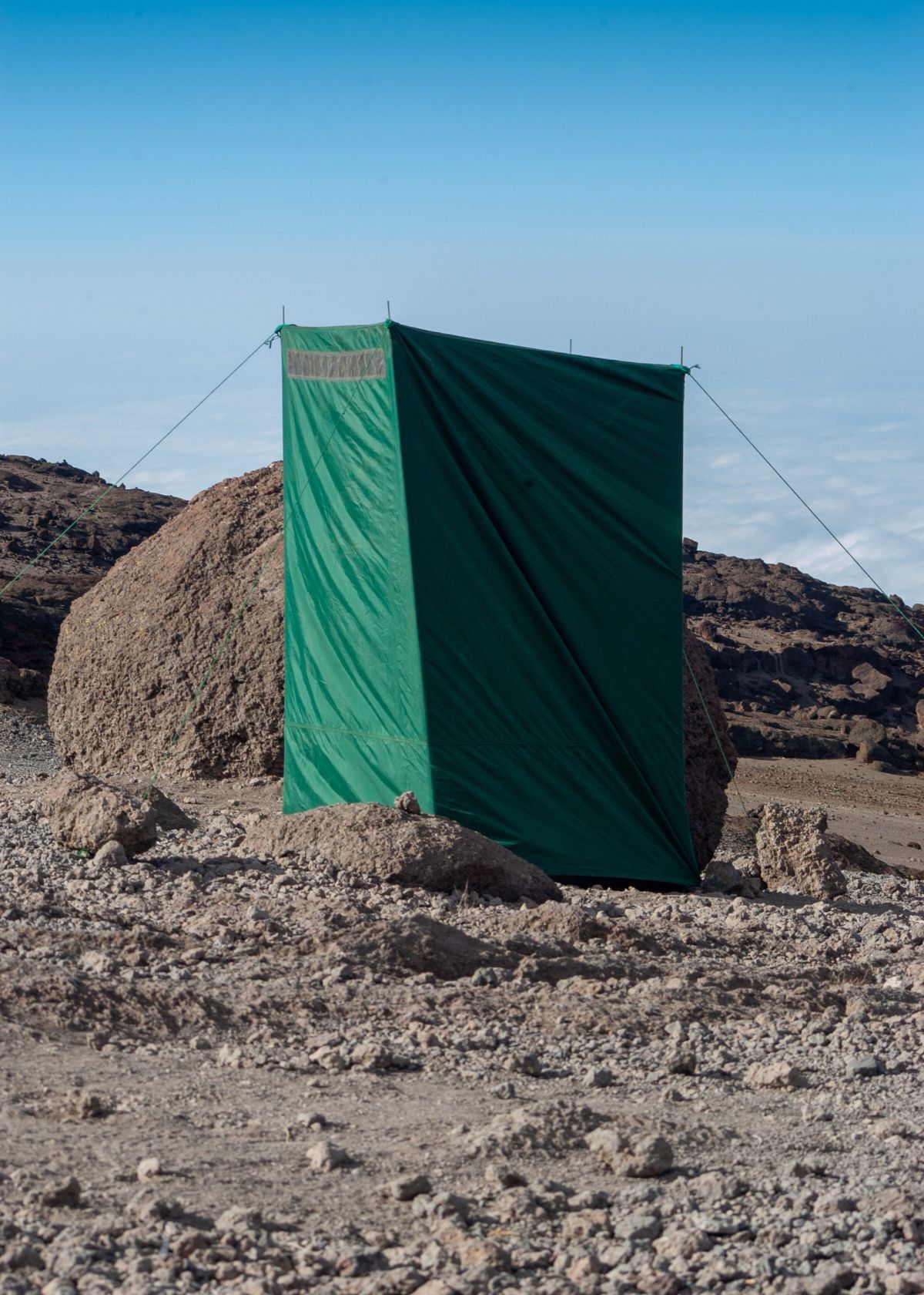 Instead of making a mess of your tent floor when changing out the bucket (or worse yet, having someone fall in), simply remove it from its brackets and place it inside another baggie before disposing of it in an appropriate area away from campground facilities (not near water).