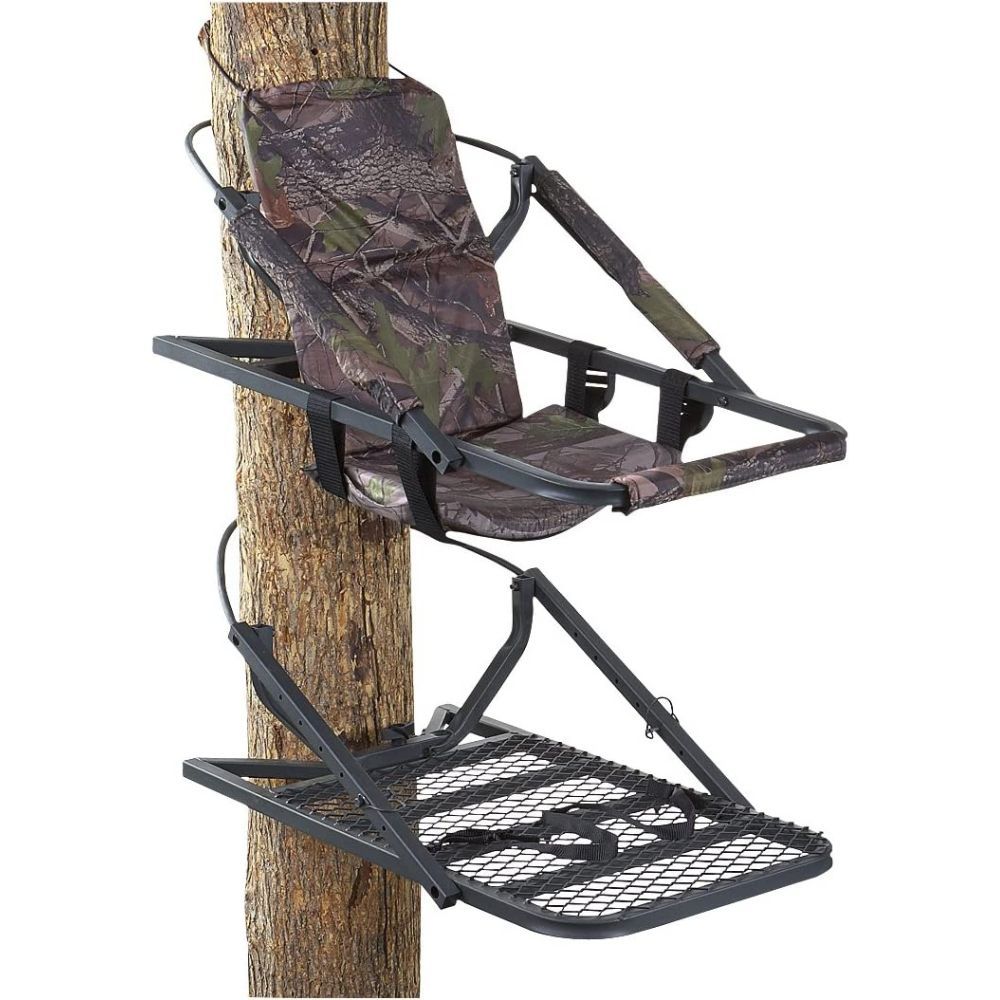 The Guide gear deluxe climbing tree stand is ideal for deer hunters looking for an extreme deluxe hunting tree stand. Constructed from sturdy steel, this durable stand will provide you with years of dependable use while keeping you secure and comfortable during long hunts.