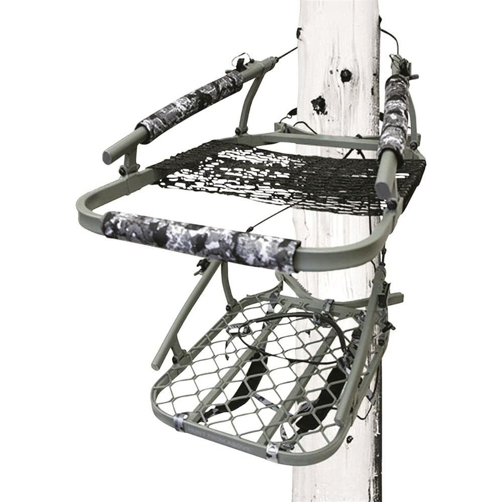 This tree stand was designed with safety in mind and featured an innovative lever action system that easily attaches the stand to the tree without using dangerous straps or chains. It also comes with a full-body harness and noise-dampening technology, so you can stay undetected and focused on your hunt. For the most comfortable hunting experience, choose this tree stand for big guys!