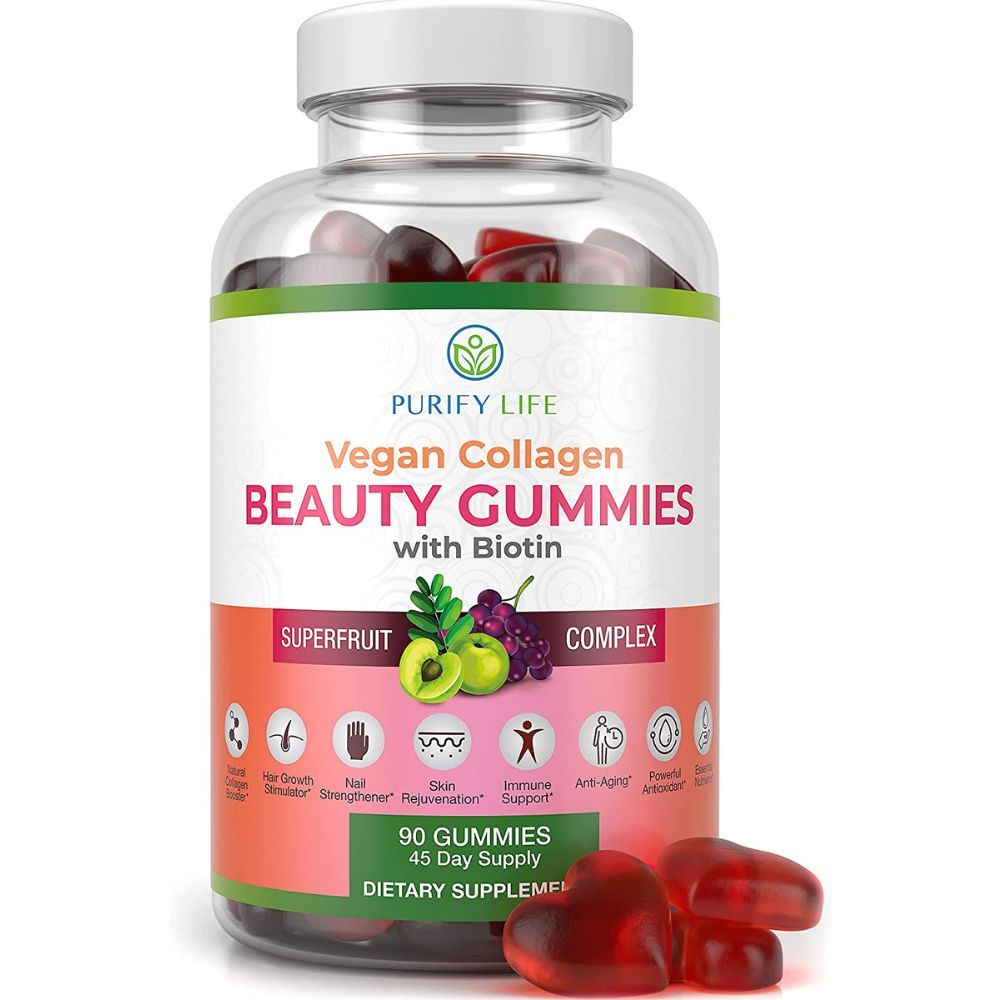 And to top it all off, they're packed with super nutrient-rich Beauty Superfruits like Grape Seed and Amla Fruit to promote stronger hair, healthier nails, and luminous skin. Get ready to shine bright with Purify Life vegan collagen gummies!