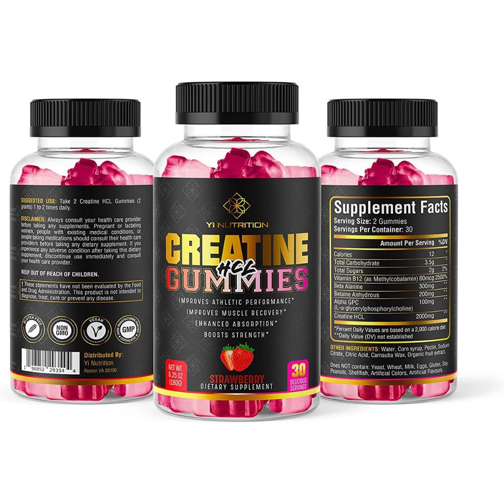 Introducing the newest addition to your training routine — Yi Nutrition creatine HCL gummy! This delicious gummy packs a punch of muscle-building power, so you can perform better and recover faster. Get ready to take your workout performance to the next level with our enhanced absorption creatine formula.