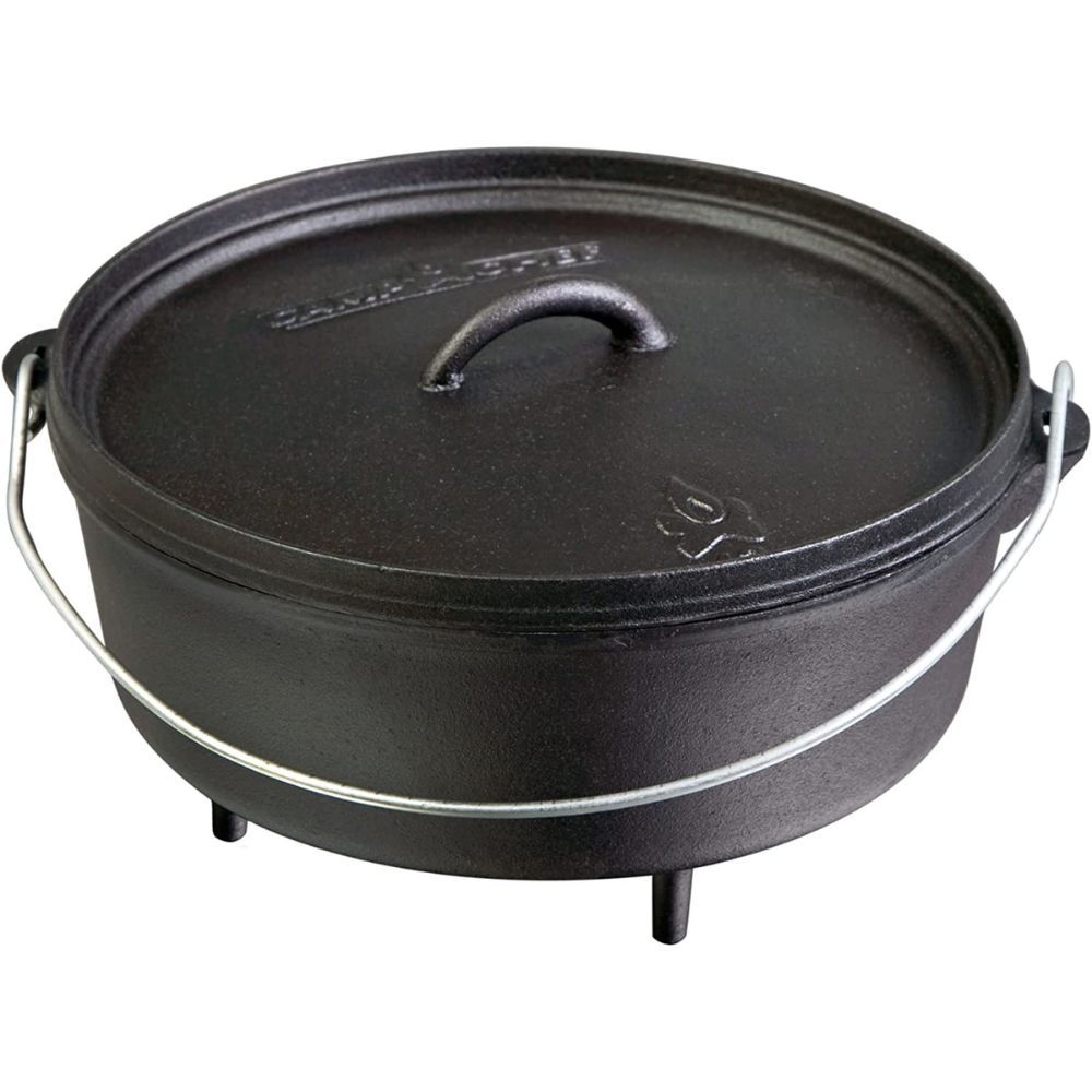 It is an excellent choice for your next cooking adventure. This 4-quart, 10-inch cast iron Dutch oven has a flange on the lid to help you cook with charcoal briquettes or wood. With its pre-seasoned 'True Seasoned Finish,' this cookware provides an easy-release surface that is ready to use immediately. Whether making soup, stews, roasts, or more, you can do it all in one pot with this Camp Chef Classic Dutch Oven.