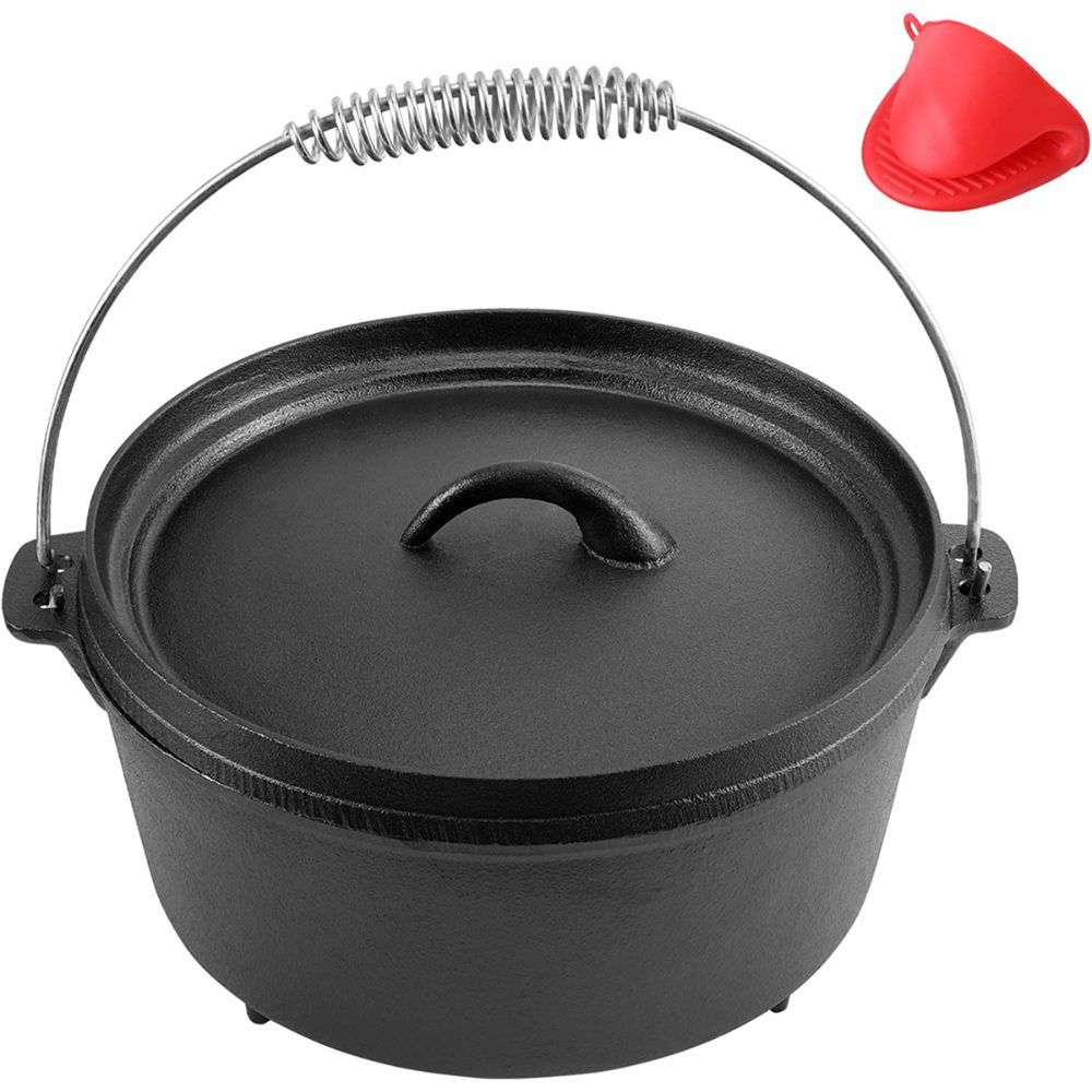 The Cast Iron Dutch Oven Pre-seasoned Pot is the perfect cooking addition to your kitchen. This ultra-durable pot offers a non-stick surface that is highly resistant to scratching and chipping and is ideal for preparing all recipes.