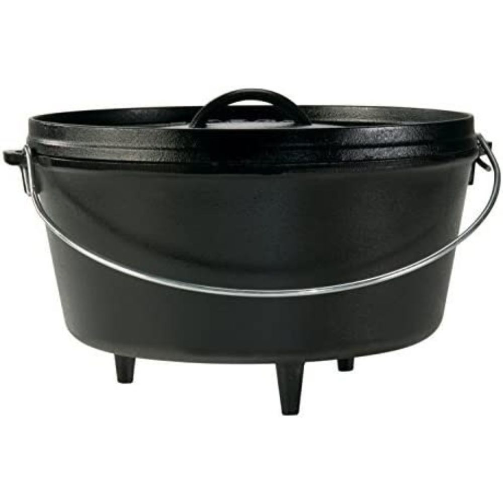 This is the ideal cookware for camping. It has a dual-function lid that doubles as a skillet, and it is also large enough to feed even the largest group with its 6 ft capacity and 12-inch diameter.