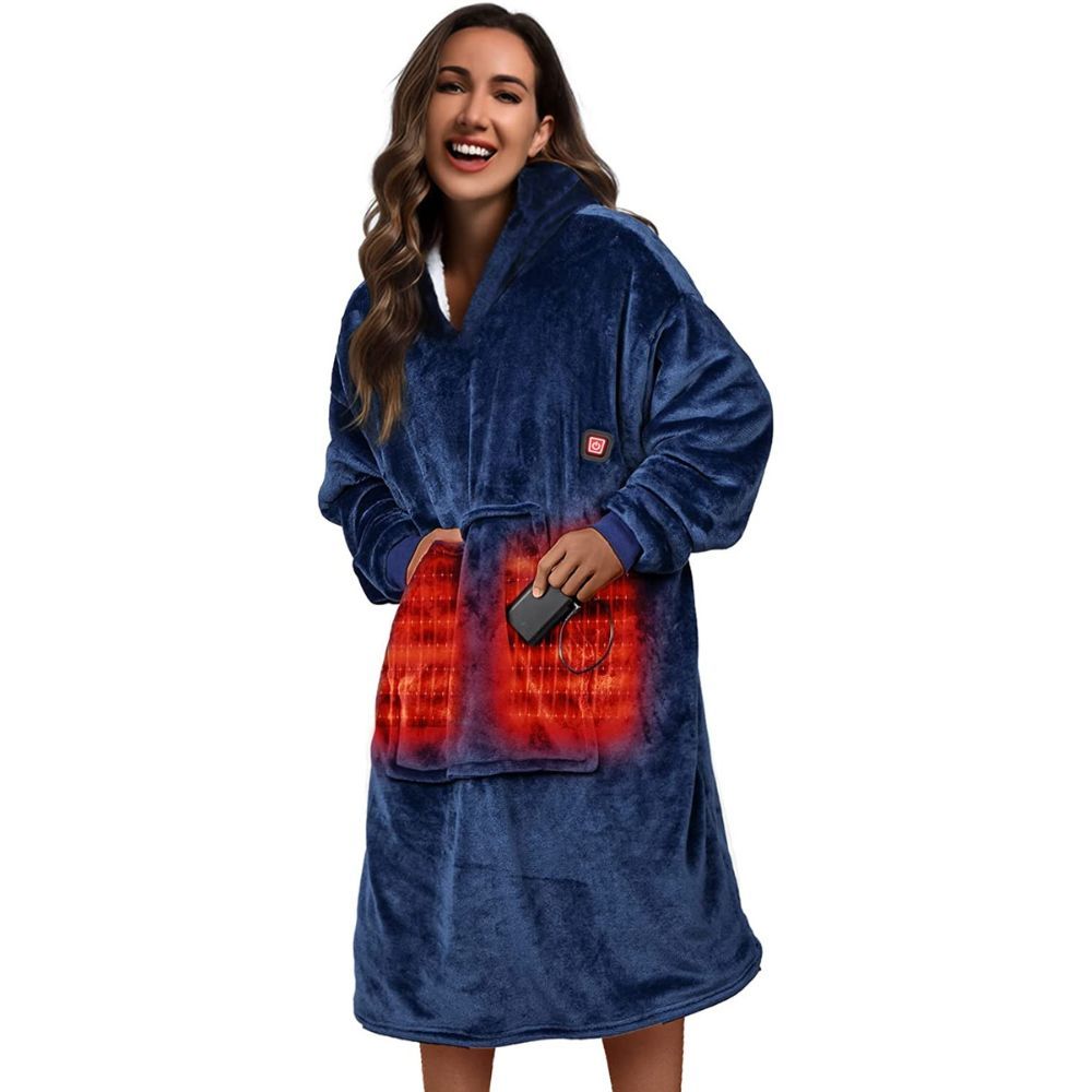 This heated oversized wearable blanket is designed with your comfort and convenience in mind. With a unique silicone controller, you can adjust the temperature to suit your needs - high 131℉, medium 122℉, or low 113℉.