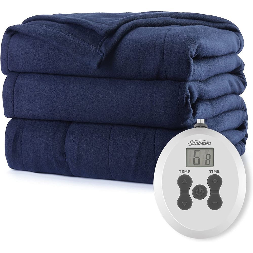 Introducing Sunbeam royal admiral heated blanket, designed for optimal warmth and comfort. Crafted from 100% Polyester, this Twin size electric blanket measures 84" x 62" for maximum coverage. The elegant, admiral blue color will add a touch of luxury to your bedroom decor.