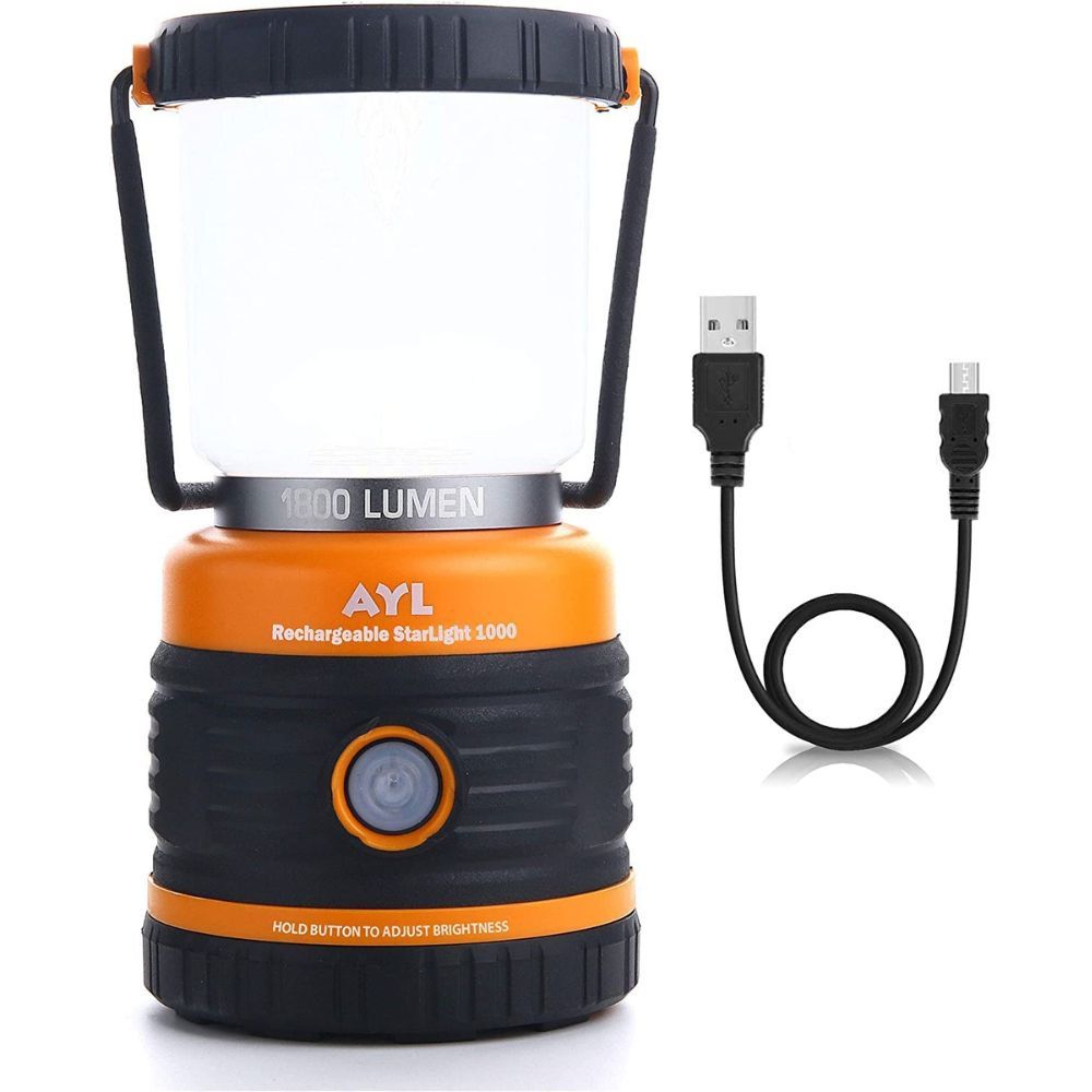 This LED camping rechargeable lantern from AYL is the best rechargeable lantern for power outage! It's fitted with 46 LED light bulbs that provide an incredible 1800 lumens of brightness - enough to light up even the darkest of nights.