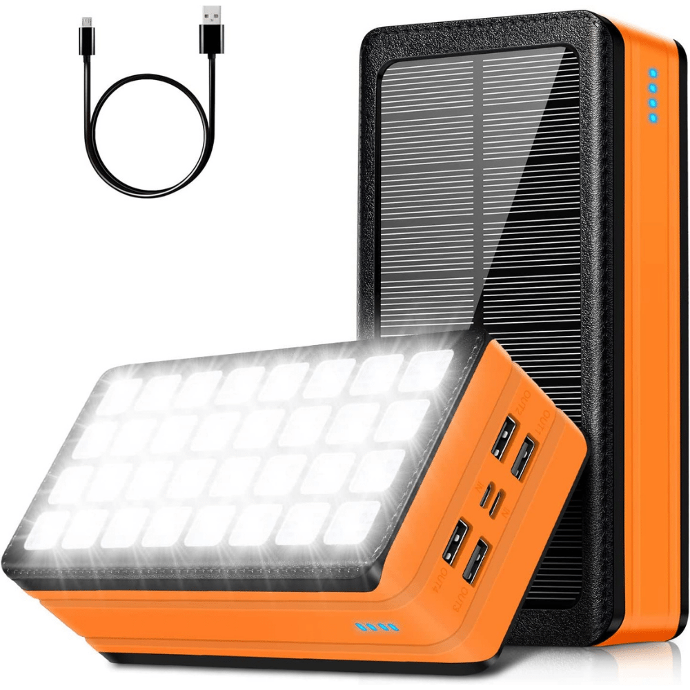 The power bank has a built-in super bright LED flashlight that can be used as an emergency light or to see in the dark when needed. It is perfect for camping trips or other outdoor activities because it can be charged using natural sunlight instead of relying on electricity from outlets or car chargers!