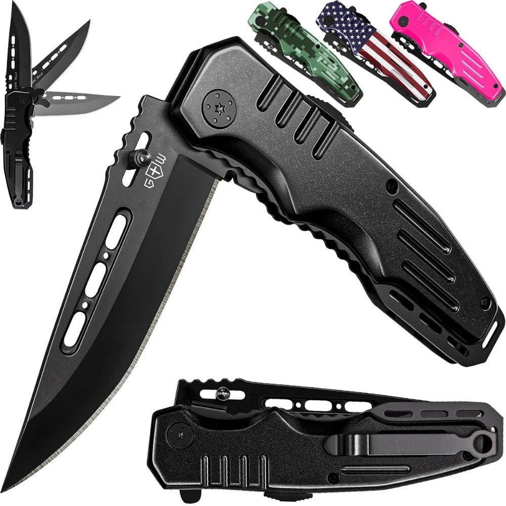 The Spring military best survival pocket knife is the perfect choice for anyone who needs an ultra-durable and reliable knife for outdoor adventures. This folding knife features a steel blade, stainless steel handle, and a three-position locking system that makes it easy to open with one hand.