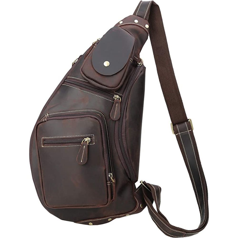 This sling bag is a great companion for outdoor adventure. With its spacious compartments, you can easily fit in your wallet, charger, keys, notes, and much more while hiking, riding, or working. The bag's exterior is crafted from full-grain leather, adding a chic touch to your ensemble while providing superior durability.
