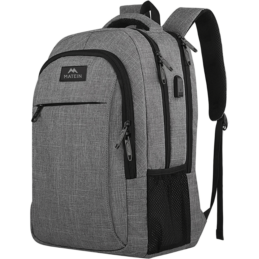 The MATEIN Travel Laptop Backpack is perfect for school, work, and travel. It has a spacious main compartment with a large zippered opening, so you don't have to unpack your bag whenever you need something. It also features two small pockets on each side, one of which has an organizer for pens, pencils, and other small items.
