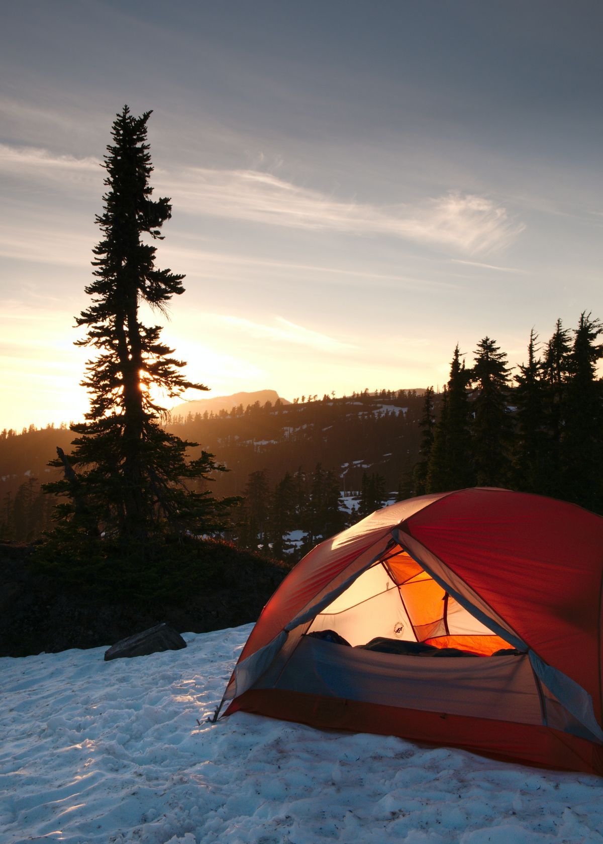A good quality tent with a sturdy frame and waterproof fly will help keep you dry in snowy or wet conditions. Insulated boots, gloves, and hats are also necessary. A stove or other heating source and fuel supply will provide warmth and allow you to melt snow for drinking water.