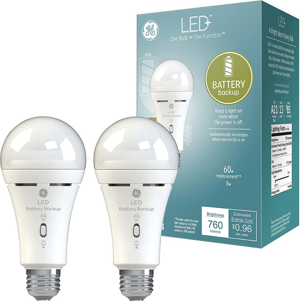The GE LED+ Backup Battery LED Light Bulb is the perfect way to save money while still having bright lights during an unexpected power outage. Unlike other emergency light bulbs, you won't have to sacrifice brightness or reliability with these battery-powered ones. And when fully charged, you'll get up to 5 hours of 120 lumens brightness. That's a great replacement for traditional 60-watt bulbs!