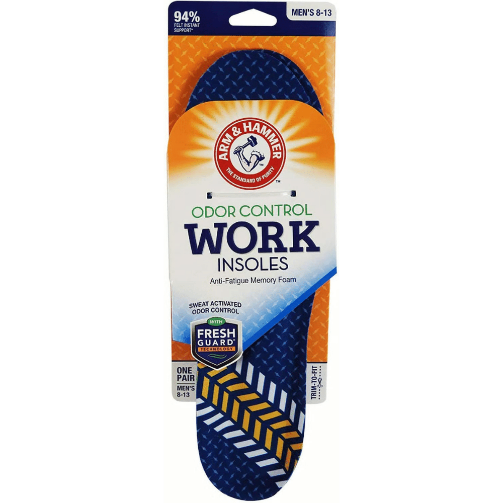The workday can be tough on your feet. Whether you're standing all day or constantly on the move, your feet take a beating. That's why you need the Arm & Hammer Work Insoles. These insoles are designed with your comfort in mind.