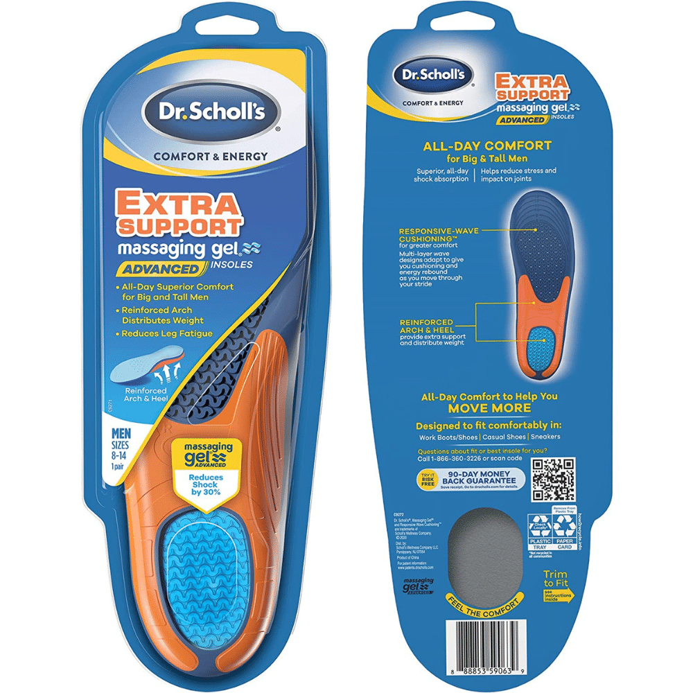In addition, the gel waves massage the most sensitive areas on your feet, providing superior shock absorption. So if you’re looking for a way to reduce foot pain and fatigue, try Dr. Scholl’s Extra Support Insoles. The insoles can be trimmed to fit casual shoes, sneakers, and work boots/shoes.